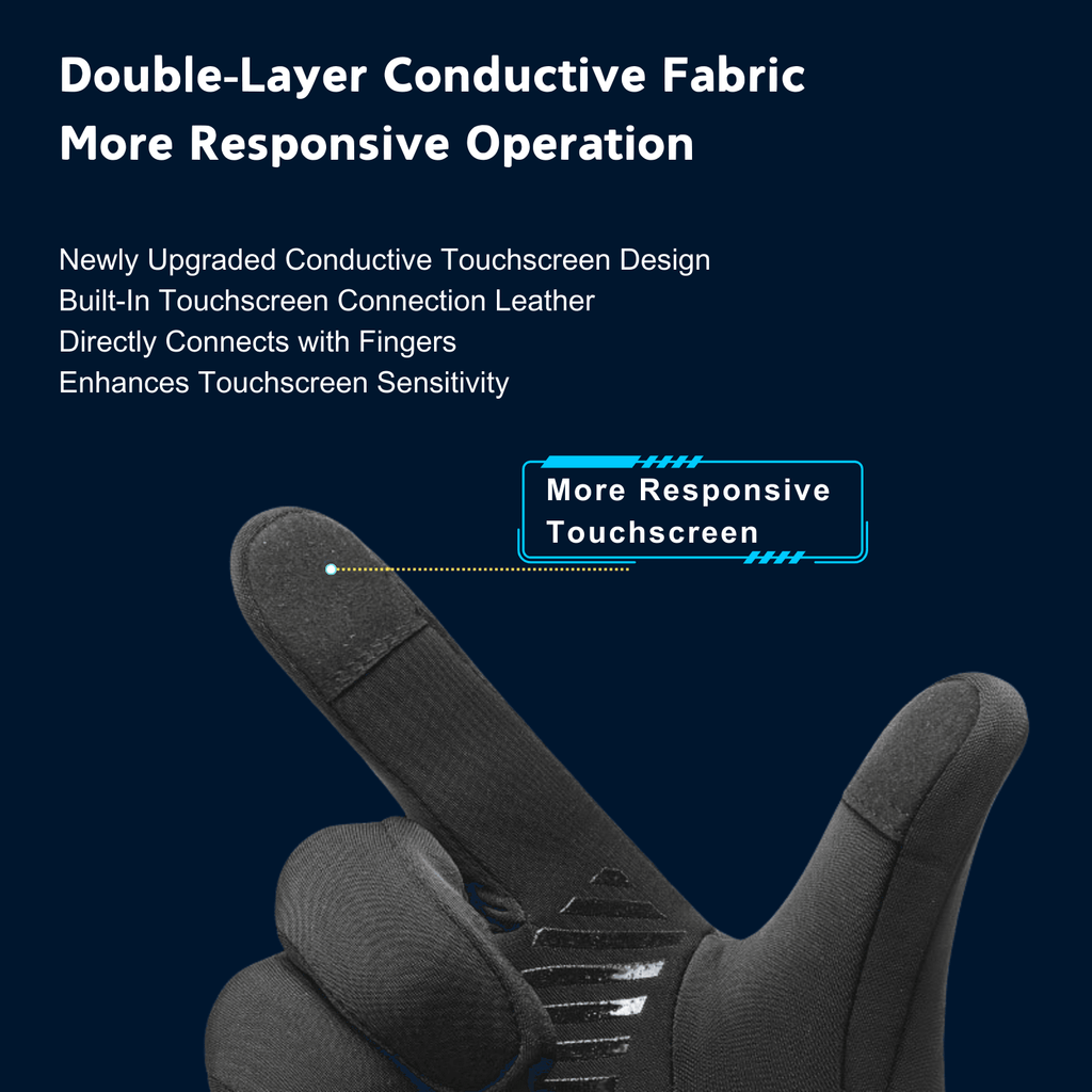 - Sensitive Touch Screen Finger Tips: With the touchscreen gloves on (touchable thumb and forefinger), all your touchscreen devices, even the smartphone covered with screen protector, can be easily controlled.